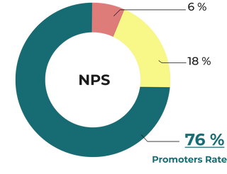 The Net Promoter Score (NPS) measures how likely customers are to recommend a company or product. NPS shows what percentage leaves an experience truly satisfied and inspired. Only a 9/10 or 10/10 count as a positive experience, 8's & 7's are rated neutral and anything below a 6 counts as negative. The NPS is calculated by taking the percentage of 9/10's and deducting the percentage of <6's.